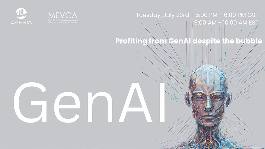 Capria Ventures hosted an insightful webinar on the evolving landscape of Generative AI (GenAI) and strategies to capitalize on its potential amidst the current market bubble. The discussion focused on navigating and profiting from this transformative technology despite the hype and market volatility, highlighting tangible opportunities for sustainable growth and innovation. The webinar provided valuable insights into harnessing GenAI's potential, making it a crucial session for anyone interested in the future of this groundbreaking technology